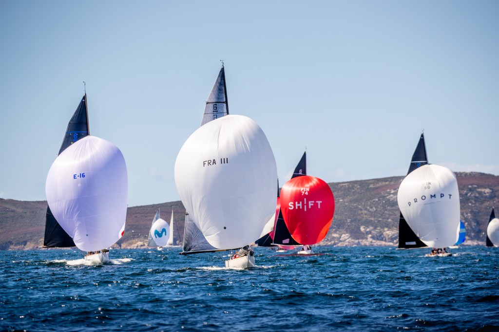 The Classic Division took two attempts at starting, but once underway those who went right made big gains. Sadly, overnight leader Aida, owned by Escotet/Botas and helmed by Javier De La Gandara Alonso, and third placed Alibaba II, skippered by Miguel Lago Cereceda, did not capitalise on the big right shift and both boats rounded the first mark mid-fleet. There were no such errors aboard International Six Metre Class President Louis Heckly’s Dix Août or the Sanxenxo based Bribon 500 who both sailed faultlessly to finish first and second respectively. Ossi Paija’s Astrée III finished third and Alicia Freire Sánchez’ Titia, helmed by Mauricio Sánchez-Bella Carswell, was fourth. Aida’s seventh place was just sufficient to put her on the second step of the Corinthian podium with Astrée III on equal points but taking the bronze medal on count back.