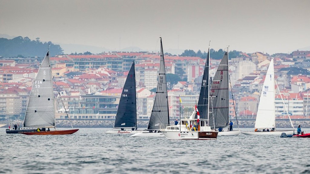 The second day of the Xacobeo Six Metre World Championship at the Real Club Nautico de Sanxenxo proved to be long and frustrating for the sailors and race committee alike. The forecast going into the day indicated dull skies and extremely light airs, but with a possible window of approximately three hours when conditions might permit racing. Determined to be ready for any chance that came, the fleet was afloat on the outer course area in good time for the planned 13:00 start. Over the course of the next five hours zephyrs of breeze came and went from virtually every point of the compass, the fleet transferred to the inner course area and the race committee constantly monitored the situation. But all to no avail and eventually the boats were sent ashore to enjoy paella and live music in the Regatta Village.
