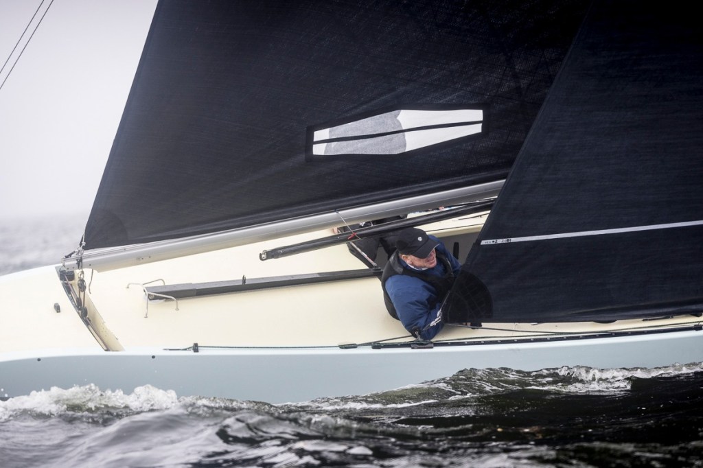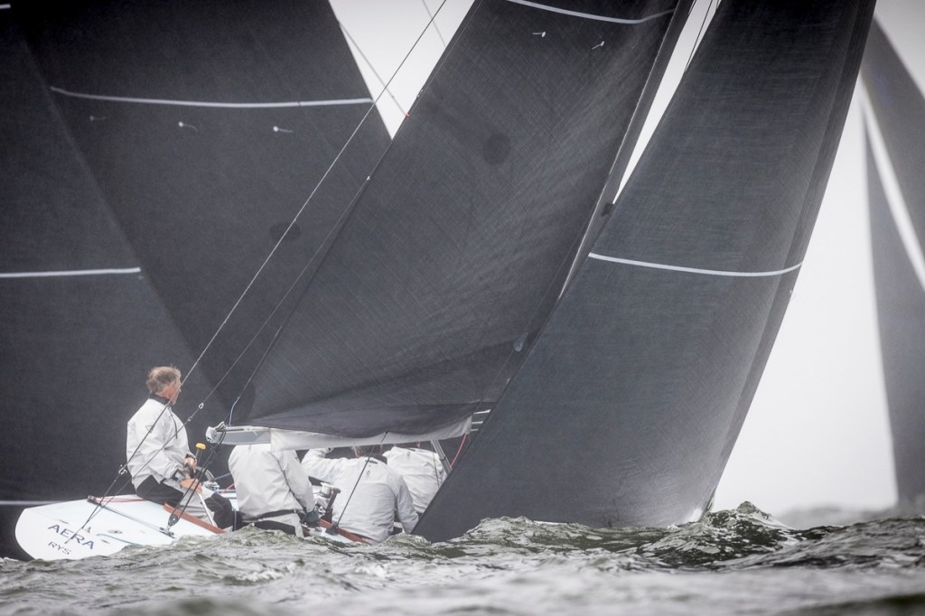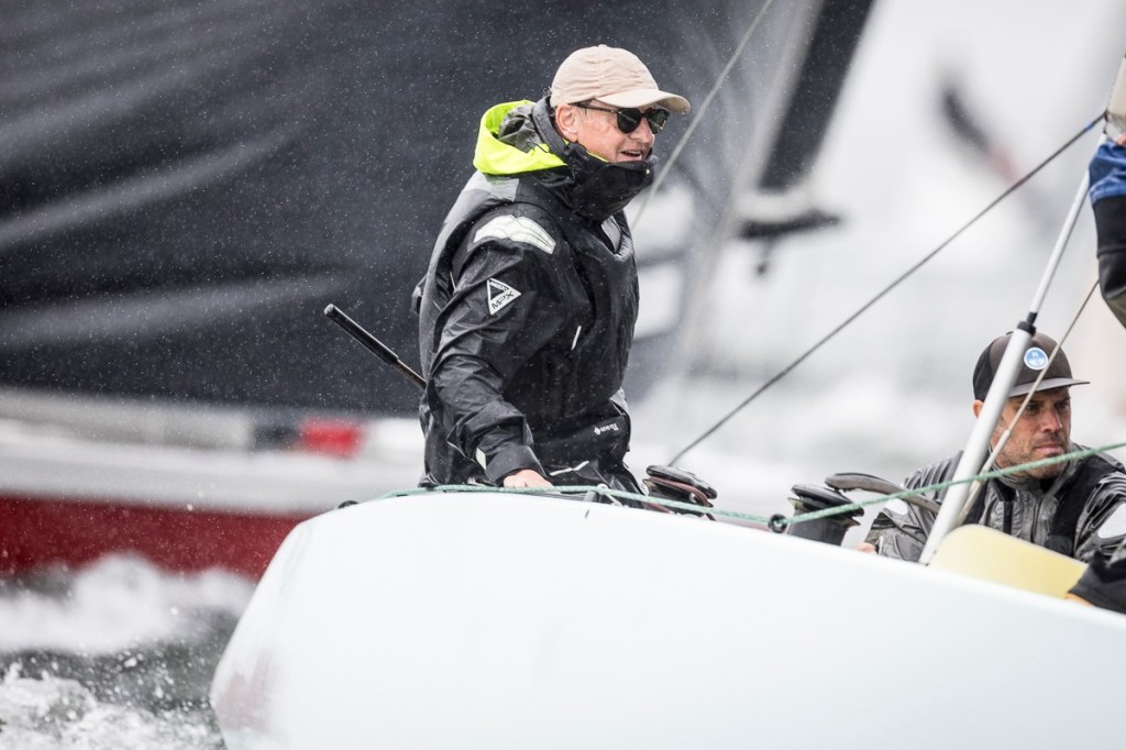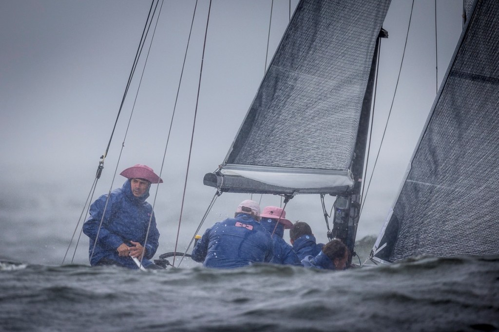 After racing Ossi Paija summed up Astree III’s day. “Well, today it was very interesting. The first thing was to figure out was where the top mark was, because you couldn’t see it! The next thing was to see the bottom mark for the same reason. And yeah, it was pretty wet. Pretty wavy. We had some heavy rainfalls and fog. Everything that the sky can throw at you. But we had good races. We had good pace in the first one, we took victory there. The second one was really close again, but we finished second. And, unfortunately in the third one we were fourth, so we were on a little bit of a downward curve. But we had a fantastic sailing day, nevertheless and we are still in the fight. His Majesty’s Bribon is leading, but I think we are in second place, so the Championship is within reach and we’re looking forward to the coming days.”