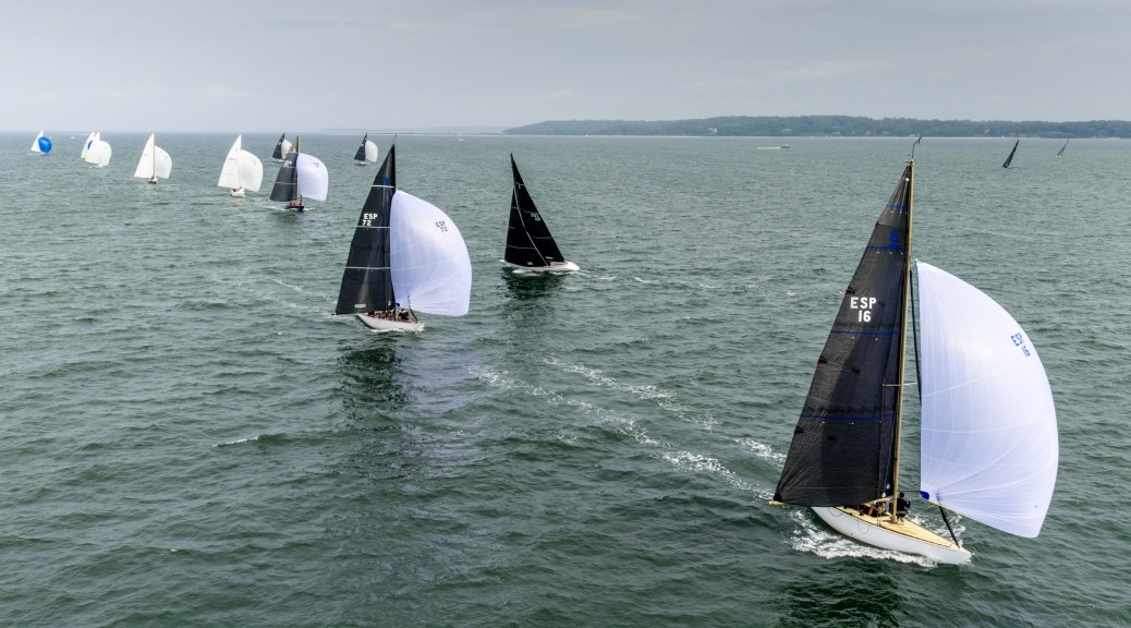His Majesty King Juan Carlos of Spain’s 78-year-old Arvid Laurin designed Bribon had another great day winning races five and six and placing third in race four in the Classic Championship. This puts her into a four-point lead over fellow Spaniard Mauricio Sanchez-Bella’s Titia, which came away from the day with a straight set of second places, enabling her to move up from fourth to second overall. Today’s other Classics race winner was 95-year-old Sprig, a Clinton H Crane design sailed by Greg Stewart. This is Greg’s third World Championship with Sprig, but it is the first time they have ever won a race. They followed up with a third and fifth and now lie in third place overall, eight points behind Titia, but only one point ahead of Thomas Kuhmann’s 1939 Christian Jensen designed Flapper, who has dropped from third to fifth.